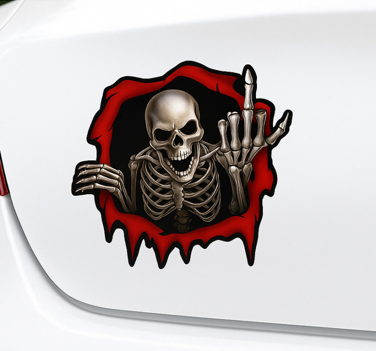 La Pegatina coche esqueleto aterrador escapando es la elección ideal para quienes desean personalizar su vehículo de una manera única y creativa. Este diseño no solo captura la atención, sino que también refleja tu personalidad audaz. ¡Imagina la mirada de sorpresa de los demás al ver esta pegatina en tu coche! Es una forma divertida de expresar tu estilo y destacar en la carretera.