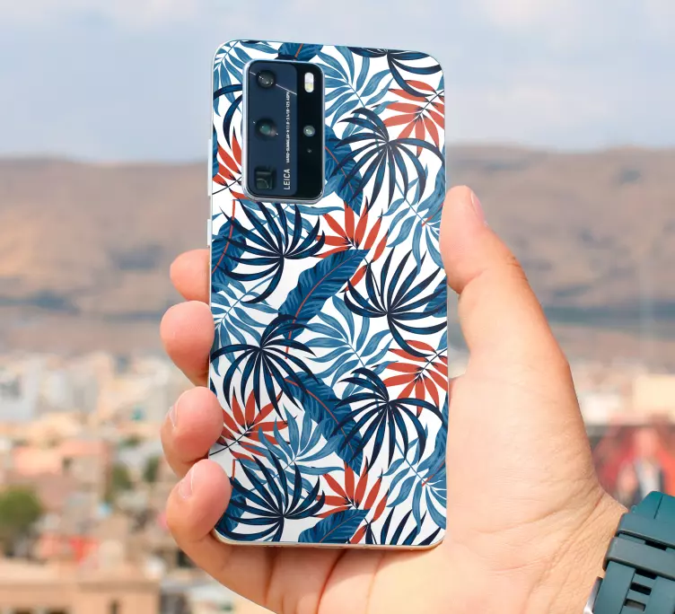 Descubre nuestra Pegatina Huawei patrón de hojas tropicales, un diseño vibrante que realza la belleza de tu teléfono móvil. Con un estampado lleno de hojas en tonos azul, rojo y verde, este patrón tropical convierte tu dispositivo en una pieza única y llena de vida. La combinación de plantas y colores te transportará a un paraíso tropical cada vez que uses tu Huawei.