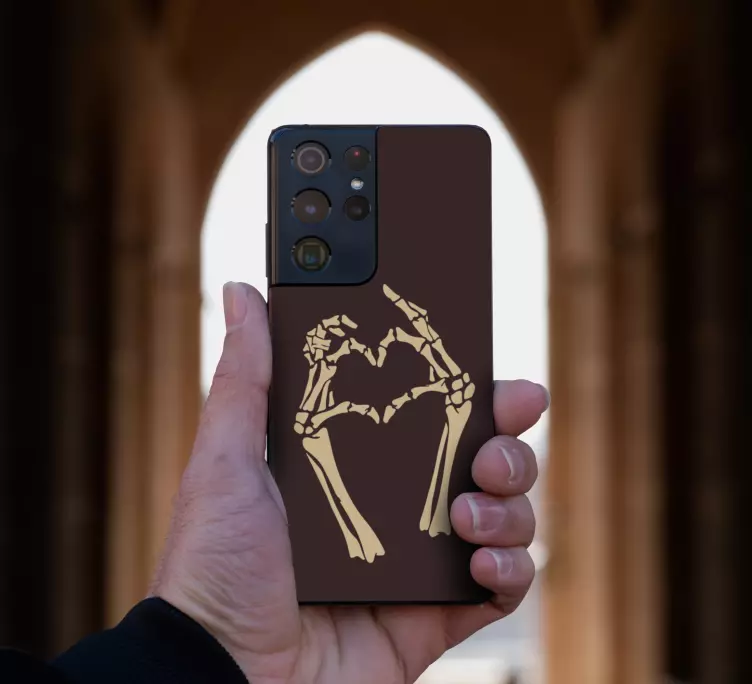 Descubre el impresionante diseño de nuestra Pegatina Samsung gesto de corazón esqueleto. Este adhesivo presenta un teléfono inteligente con un diseño innovador que combina un esqueleto haciendo un gesto de corazón, simbolizando el amor de una manera divertida y creativa. Ideal para aquellos que quieren dar un toque único a su móvil mientras protegen su superficie.