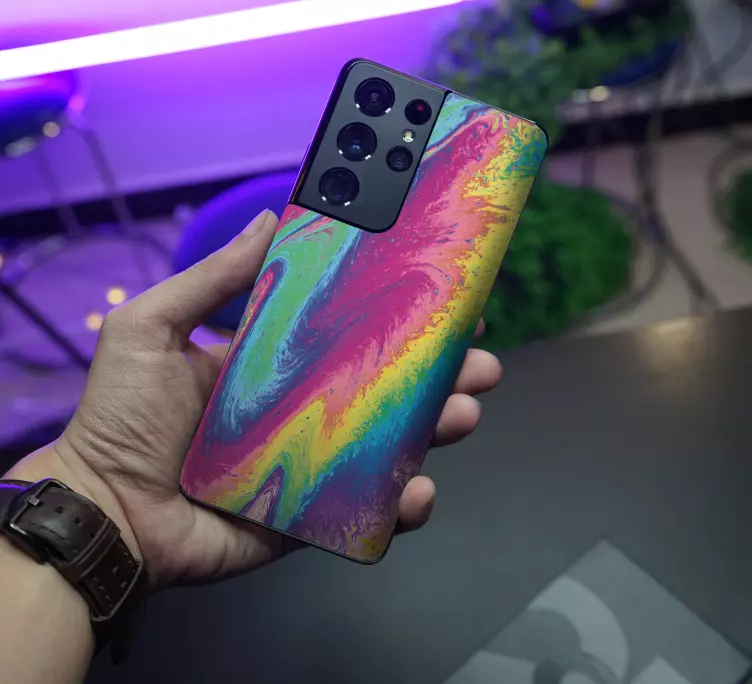 Descubre la pegatina Samsung remolino fluido colorido, un adhesivo único que transforma tu dispositivo con un diseño gráfico vibrante y moderno. Este vinilo presenta un precioso efecto de mármol, con tonos de arcoíris que dan vida a la celda de tu móvil. Perfecto para quienes buscan personalizar su teléfono y hacerlo destacar entre la multitud, este adhesivo se adapta a cualquier modelo de móvil Samsung, añadiendo un toque artístico y llamativo.
