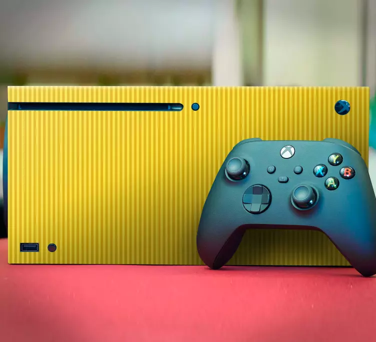 Descubre la pegatina xbox funda de juego vibrante, un adhesivo que transforma tu consola en una obra de arte. Con un diseño gráfico que incluye videojuegos en tonos amarillos y rayas dinámicas, este vinilo no solo es una forma de decoración, sino una declaración de estilo para tu controlador y consola.