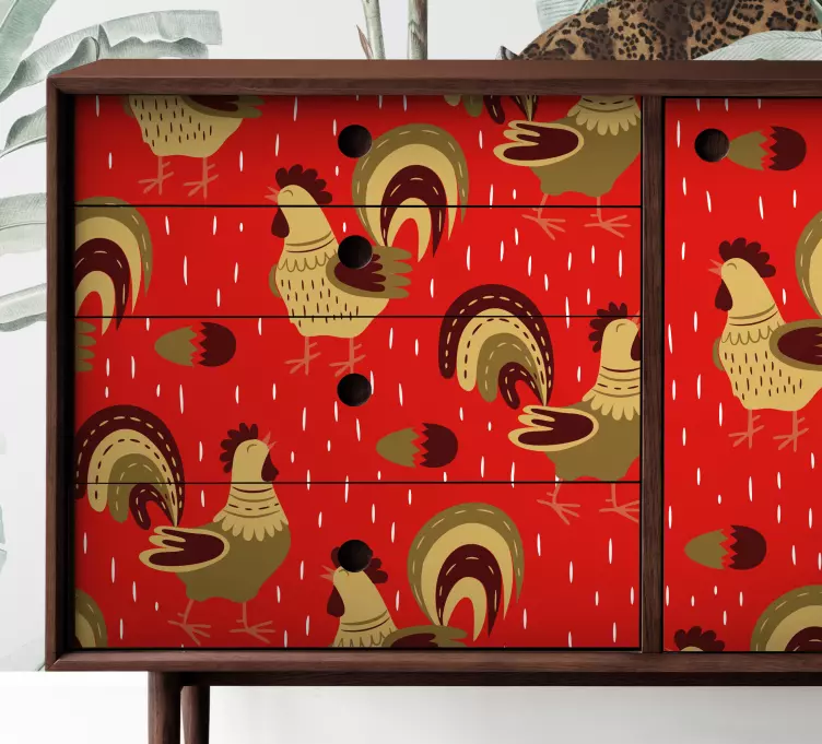 Descubre el encantador Vinilo animal de granja patrón de gallo juguetón, una lámina decorativa que transformará tu espacio con su vibrante diseño. Este hermoso patrón presenta gallos alegres y llenos de vida, en un estampado vistoso y colorido que evoca la esencia de la granja. Con un fondo rojo brillante, esta ilustración se convertirá en el centro de atención de cualquier habitación, aportando calidez y carácter a tus muebles y rincones favoritos.