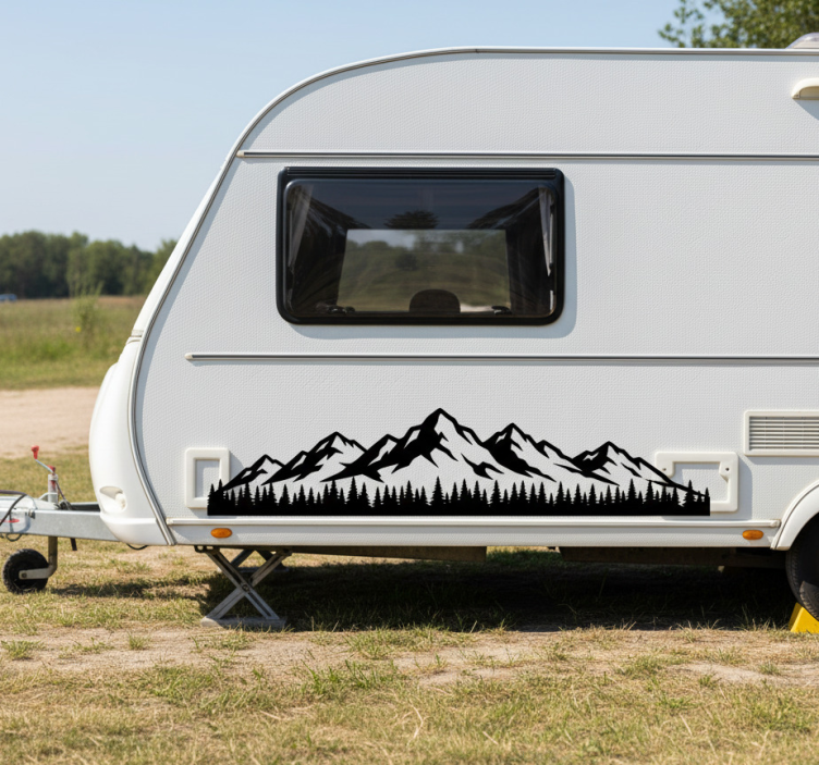 Vinilo autocaravana decoración de montaña aventurera