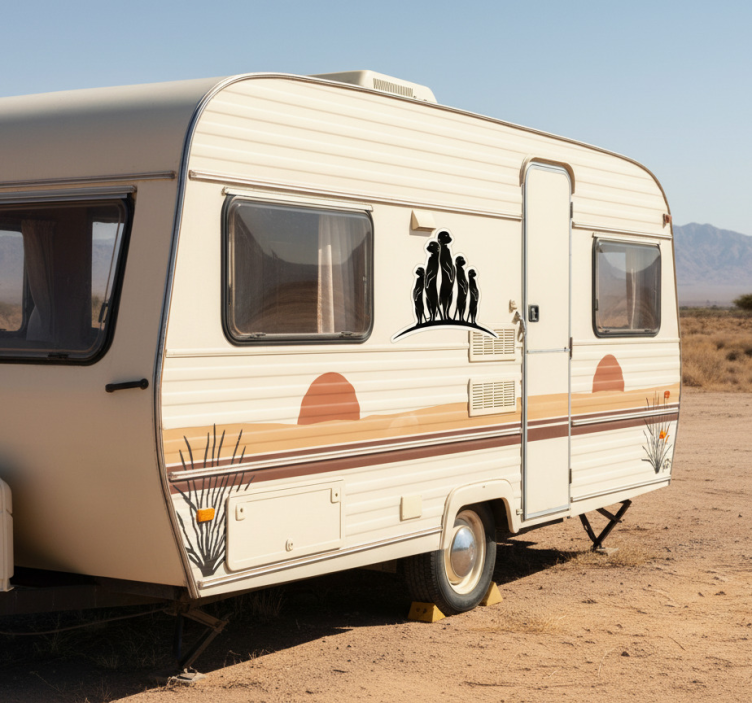 Vinilo autocaravana familia de suricatas curiosas
