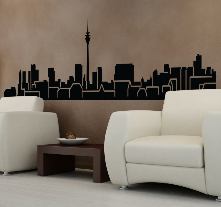 Descubre el magnífico Vinilo contorno de ciudad elegante, un diseño que captura la esencia de Düsseldorf, Alemania, con su horizonte urbano y edificios modernos. Esta obra de arte decorativa transformará cualquier espacio con su estilo contemporáneo y vibrante, ideal para quienes buscan un toque único en su decoración.