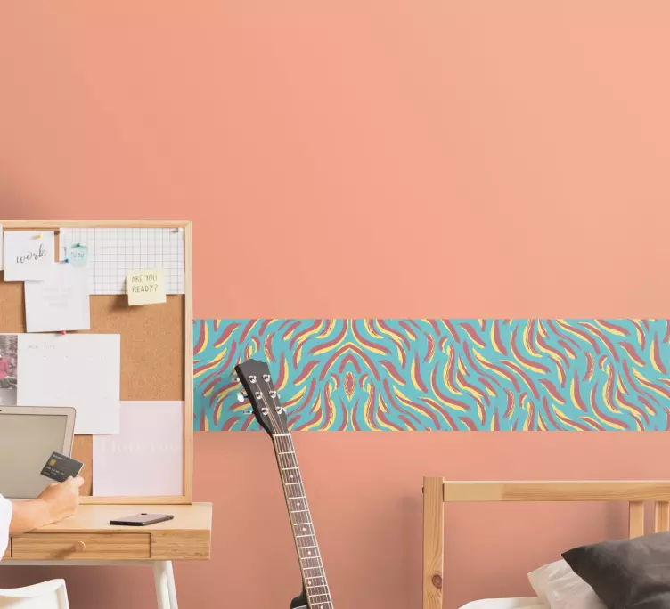 Descubre el Vinilo curvas abstractas vibrantes, un diseño que destaca por su cenefa y frontera llenas de rayas y ondas en un patrón abstracto. Este estampado vistoso transformará cualquier espacio, aportando una energía única y dinámica a tu decoración. La mezcla de colores vibrantes y formas fluidas crea un ambiente atractivo y moderno que cautivará a todos tus visitantes.