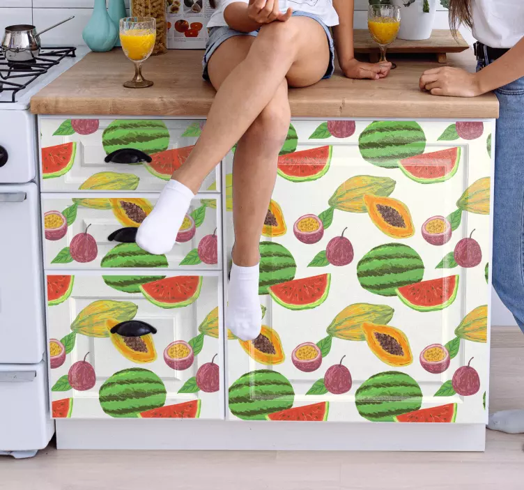 El vinilo de fruta es la elección perfecta para quienes desean revitalizar su hogar. Con el vinilo de fruta creación de motivos frutales, puedes añadir un toque fresco y alegre que transforma cualquier espacio en un lugar acogedor. Su diseño atractivo no solo embellece, sino que también inspira buen humor en quienes lo contemplan, convirtiendo tu mueble en el centro de atención de la habitación.