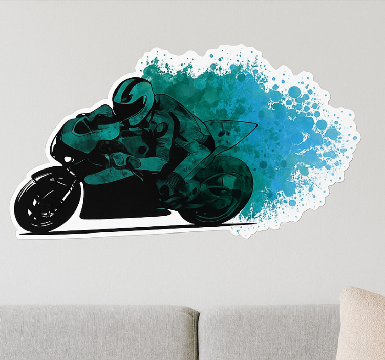 Transforma tu entorno con el Vinilo de moto vinilo de moto salpicadura azul rider, una pieza que no solo decora, sino que inspira. Este vinilo no es solo una simple decoración, es una declaración de estilo que refleja tu pasión por las motos y la aventura. Su diseño único y vibrante aporta un toque fresco y moderno a cualquier habitación, haciéndolo ideal para los amantes de la velocidad y la estética audaz.