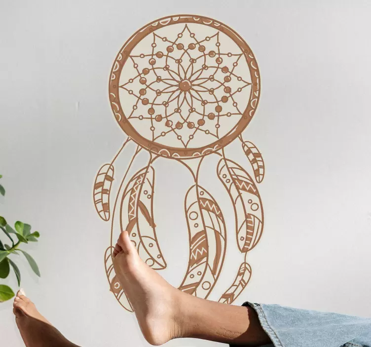 Descubre la belleza del vinilo diseño intrincado de atrapasueños, un arte decorativo que evoca un estilo bohemio y espiritual. Este diseño, en tonos beige, presenta una intrincada red de plumas que dan vida a cualquier espacio, transformando tu hogar en un refugio artístico y acogedor. ¡Perfecto para aquellos que buscan un toque único y personal en su decoración!