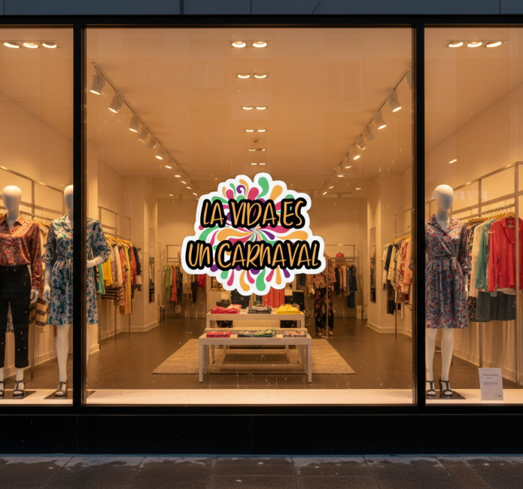 El Vinilo escaparate vinilo escaparate la vida es un carnaval es perfecto para quienes desean darle un toque alegre a sus espacios. Su diseño único no solo decora, sino que también inspira y motiva a todos los que lo ven. Convierte tu local o habitación en un lugar donde la diversión y la creatividad fluyan libremente, creando un entorno acogedor y festivo que cautivará a tus visitantes. ¡Atrévete a decorar con alegría!