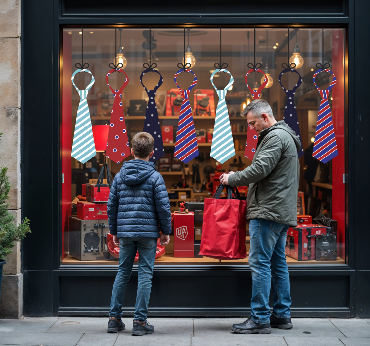 El Vinilo escaparate lazos colgantes es la elección perfecta para aquellos que buscan transformar su espacio en un lugar acogedor y festivo. Su diseño único cautivará a todos, haciendo que cada mirada se detenga en tu escaparate. Al incorporar este vinilo, no solo adornas tu local, sino que también creas un ambiente que celebra momentos especiales, como el Día del Padre. ¡Deja que tu creatividad brille y sorprende a tus clientes con un toque de originalidad!