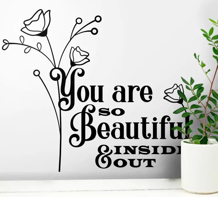 Descubre el encanto del vinilo frase célebre eres tan hermosa por dentro, un diseño que fusiona la belleza de las flores con un mensaje positivo que inspira. Este vinilo presenta un estilo floral y un texto inspirador que realza la hermosa esencia de tu espacio, convirtiéndolo en un lugar lleno de belleza y motivación. Cada detalle está pensado para transmitir una sensación de paz y amor propio, ideal para cualquier rincón de tu hogar.