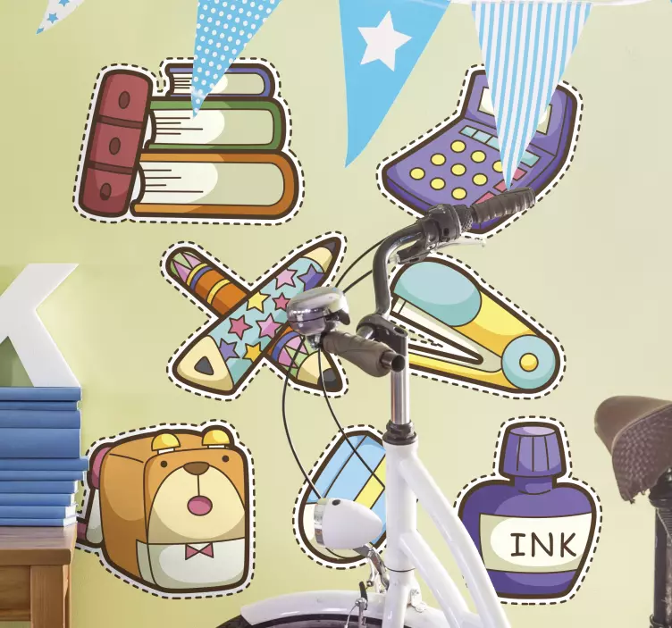 Aplicar el vinilo iconos de papelería coloridos es sencillo y divertido. La mejor opción es usar cinta adhesiva de doble cara en la parte posterior. También puedes enmarcarlo o utilizar chinchetas y blu-tack reutilizable. Asegúrate de sostener cada tira firmemente durante 10 segundos para una fijación perfecta. ¡Decorar nunca fue tan fácil!