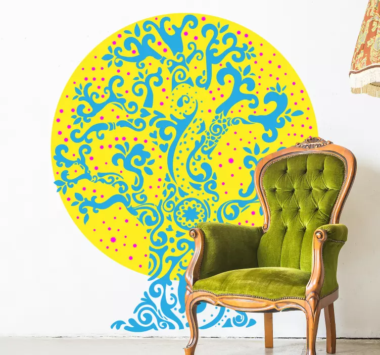Descubre la magia de la vinilo naturaleza Árbol ornamental colorido, un diseño que evoca la esencia de la naturaleza con un vibrante árbol rodeado de círculos y topos. Este arte decorativo presenta formas orgánicas que aportan vida y frescura a cualquier espacio, convirtiéndose en un elemento vistoso que invita a explorar un mundo lleno de color y armonía.