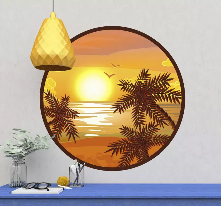 Descubre la magia de la Vinilo naturaleza atardecer sereno vista, un diseño circular que captura la esencia de un atardecer tropical. Con palmeras que se mecen suavemente en la brisa y una playa que invita a la tranquilidad, este vinilo te transportará a un lugar sereno donde el océano se encuentra con el cielo. La combinación de colores vibrantes y la representación de la naturaleza te permitirá disfrutar de una atmósfera relajante y acogedora en cualquier espacio.