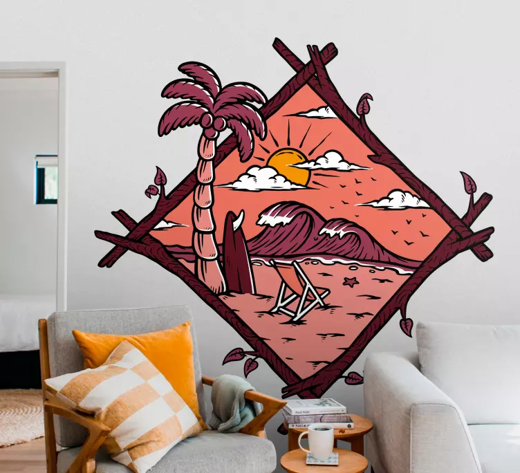 Este vinilo naturaleza escena de playa tropical es una maravilla visual que captura la esencia de un atardecer en la playa. Con un diseño que incluye un sol radiante, un tablista disfrutando de las olas y una relajante silla de playa bajo la sombra de palmeras, este dibujo evoca la tranquilidad de un paraíso tropical. Las montañas al fondo añaden un toque de majestuosidad a la escena, creando un ambiente perfecto para relajarse y desconectar.