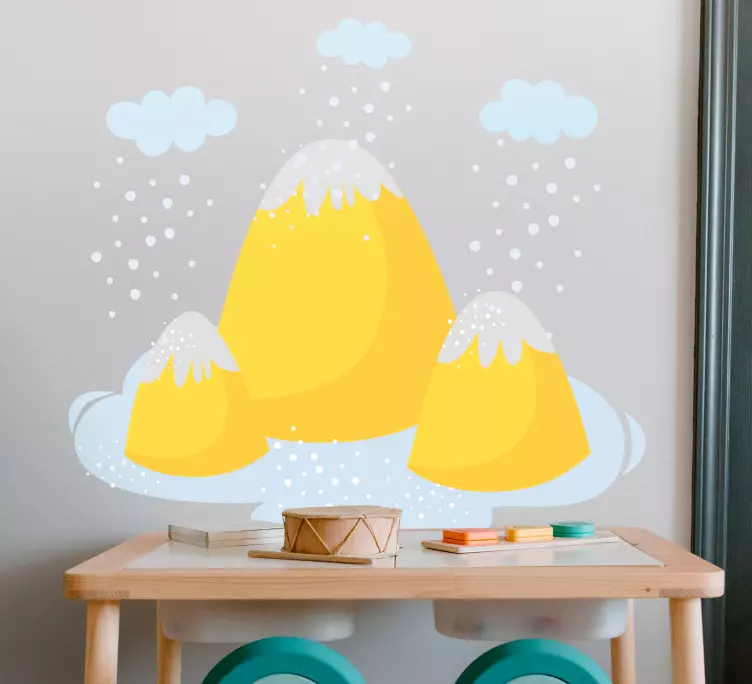 Descubre la belleza de la naturaleza con nuestro Vinilo naturaleza picos de montaña amarillos. Este diseño caprichoso presenta montañas amarillas que se elevan majestuosamente, rodeadas de nubes suaves y un toque de nieve, creando una ilustración vibrante que evoca la calma y la aventura. Perfecto para los amantes de la naturaleza, este vinilo transformará cualquier espacio en un rincón inspirador.