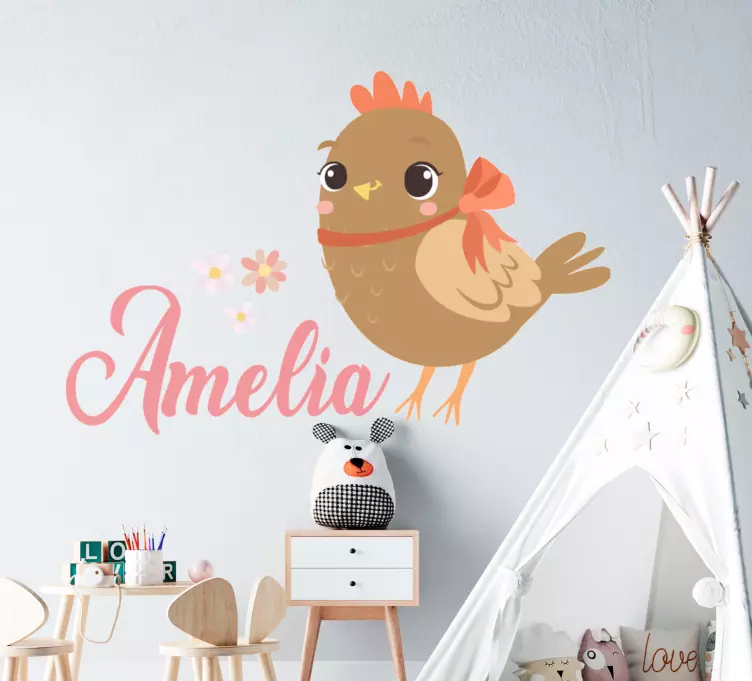 Descubre el vinilo pájaro diseño de ave adorable, una encantadora ilustración que alegrará cualquier espacio. Este diseño caprichoso presenta un adorable pájaro con un nombre personalizado, ideal para los amantes de los animales y perfecto para habitaciones de niños. Su toque divertido y personalizable convierte este vinilo en una opción única para la decoración, aportando alegría y color a tu hogar.
