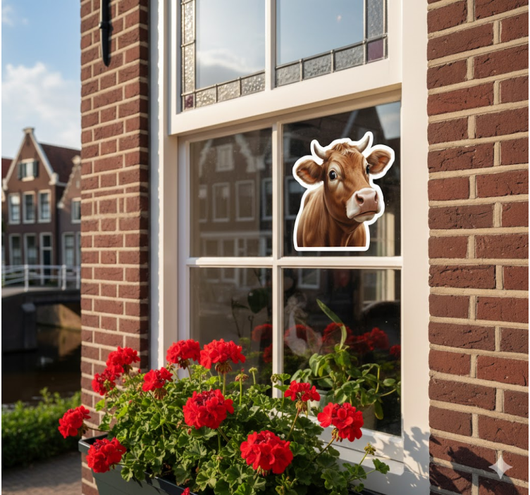 Vinilo para cristal ventana vaca campesina curiosa