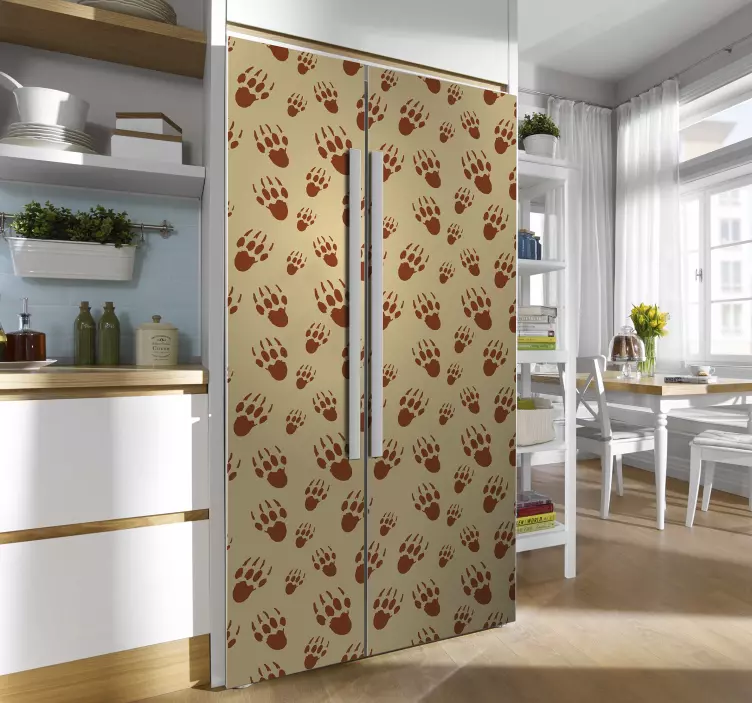 Transforma la apariencia de tu cocina con nuestro vinilo para electrodoméstico huellas de oso. Este diseño cautivador presenta un encantador estampado de huellas de oso, junto con puerco espín y pistas que evocan la belleza de la naturaleza. Ideal para dar un toque decorativo a tu refrigerador, nevera, frigorífico o heladera, este vinilo es perfecto para quienes buscan un estilo único y natural en su diseño de cocina. ¡Déjate llevar por el estilo animal y convierte tu electrodoméstico en una pieza de conversación!