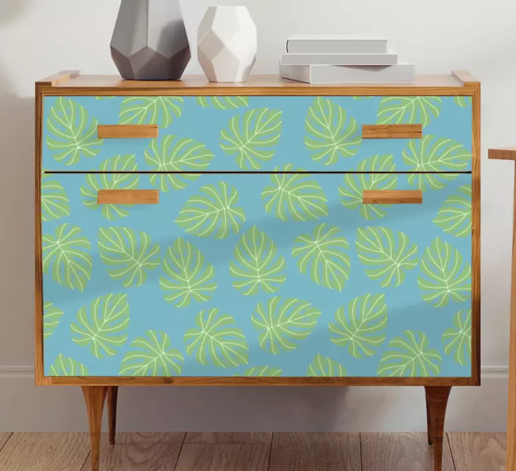 Descubre el fascinante vinilo para mueble con diseño de hojas, donde el arte tropical se fusiona con la naturaleza en un hermoso patrón que evoca frescura y vitalidad. Este estampado de hojas en tonos azul y verde transforma cualquier mueble en una pieza decorativa única, convirtiendo tu hogar en un oasis de estilo. ¡Perfecto para aquellos que aman la decoración vibrante y llena de vida!