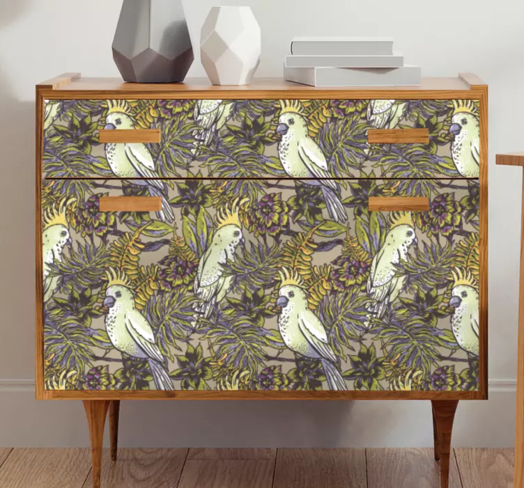 Descubre la belleza de la naturaleza con nuestro vinilo para mueble concepto inspirado en aves vivas. Este diseño vibrante presenta un patrón cautivador de loros, hojas y flores que transformará tu mueble en una obra de arte tropical. Con su estilo vistoso y lleno de vida, este vinilo no solo embellece, sino que también aporta un toque fresco y alegre a cualquier espacio. ¡Deja que tu hogar respire naturaleza y color!