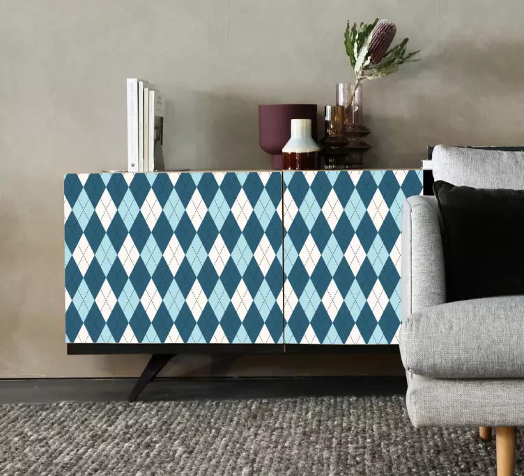 Descubre el encanto del Vinilo para mueble configuración en forma de diamante, un diseño que combina la elegancia de los rombos y diamantes en un patrón geométrico que aportará un aire fresco y moderno a tus muebles. Con su hermoso estampado en tonos azules, este vinilo no solo es decorativo, sino que transforma cualquier superficie en una obra de arte visualmente impactante.