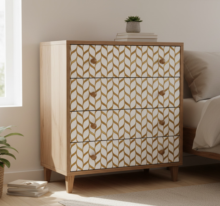 Vinilo para mueble patrón de hojas trenzadas doradas