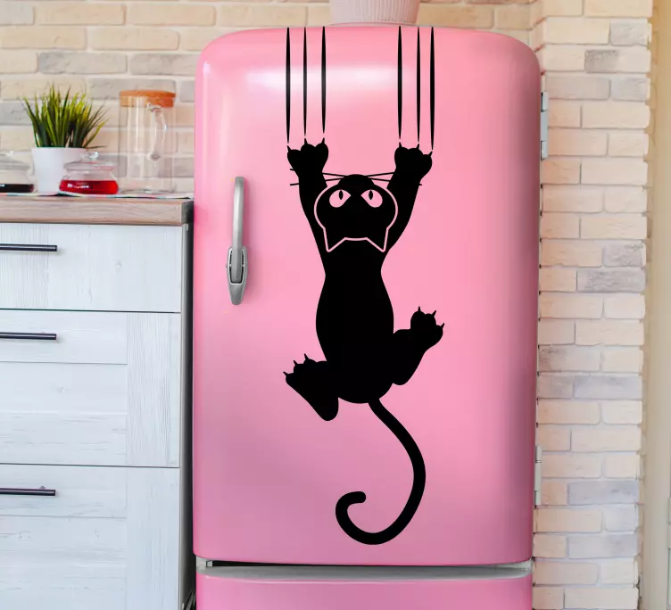 Vinilo para nevera gato juguetón trepando