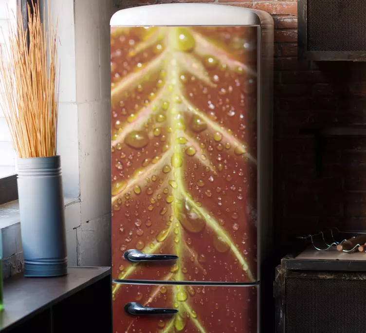 ¡Transforma tu refrigerador en una obra de arte con nuestro vinilo para nevera gotas de agua en hojas! Este diseño único presenta una hermosa hoja de maranta, donde las gotas de agua parecen resbalar sobre la textura verde de la naturaleza. Ideal para quienes buscan darle un toque floral y fresco a su nevera, este vinilo es perfecto para cualquier frigorífico o heladera. ¡Deja que tu cocina respire vida!