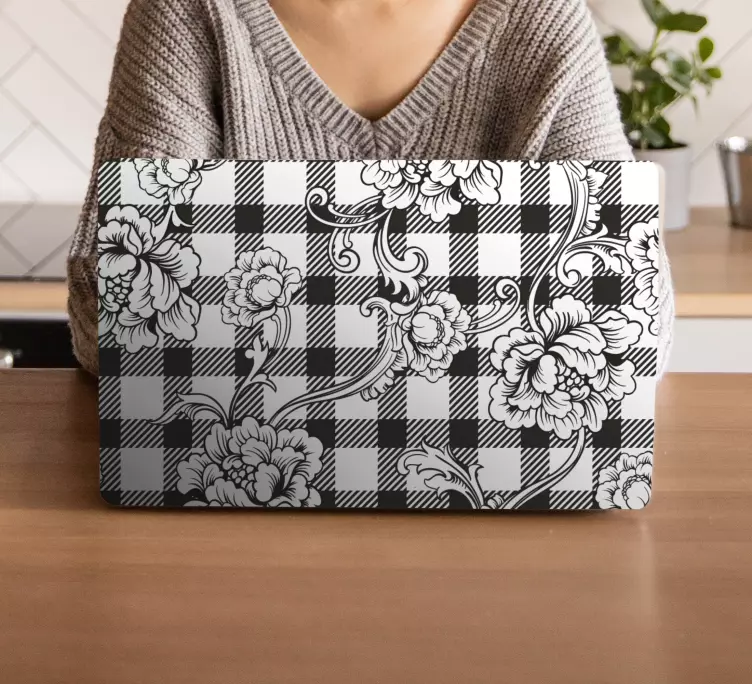 Vinilo para portátil motivo floral a cuadros