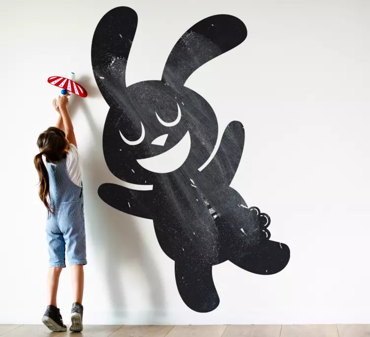 Descubre el Vinilo pizarra conejo alegre, un adhesivo encantador que trae a tus paredes la silueta de un conejito feliz y juguetón. Este diseño caprichoso y lleno de color, inspirado en dibujos animados, hará sonreír a los más pequeños de la casa y creará un ambiente divertido y acogedor en cualquier habitación. ¡Deja que la creatividad de tus niños brille mientras interactúan con este adorable conejito!