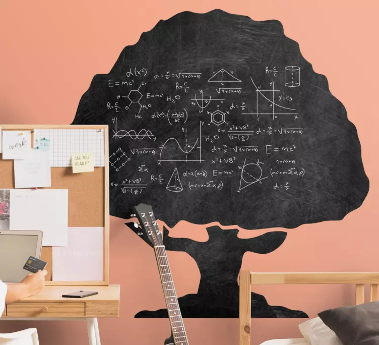 Referencia: A48895Una silueta impactante de un árbol presenta ecuaciones y diagramas científicos integrados en su diseño, simbolizando la fusión de la naturaleza y el conocimiento. Este diseño encarna un espacio de estudio creativo que inspira el aprendizaje y la curiosidad, haciéndolo perfecto para entornos educativos.