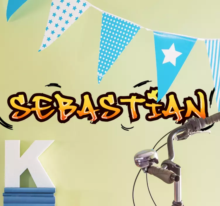 Referencia: A50836Un diseño dinámico que presenta un nombre personalizable en una fuente enérgica, rodeado de alegres decoraciones de cumpleaños. Los colores y el estilo juguetones lo hacen perfecto para añadir un toque personal a los espacios de los niños, celebrando la individualidad y la creatividad.