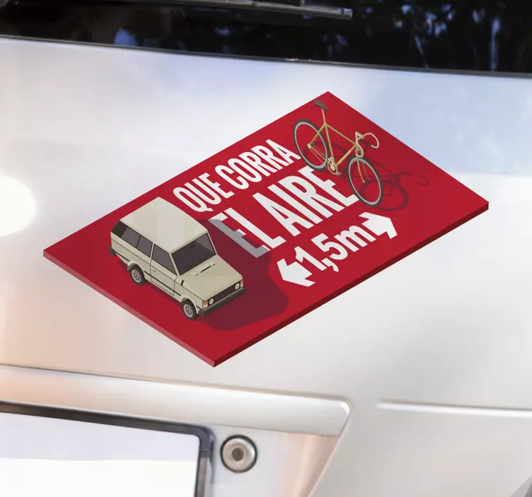 Este vinilo para automóvil de precaución ciclista está diseñado con un fondo rojo, un automóvil, una bicicleta y un texto que dice 'precaución que corre el aire'. Es perfecto para mostrar tu preocupación por el ciclista y agregar belleza a la superficie de tu vehículo.