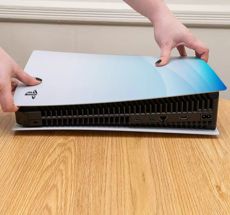 Aplicar el vinilo PS5 funda gradiente azul es muy sencillo. Solo necesitas limpiar la superficie de tu consola y despegar el adhesivo para colocarlo con cuidado. ¡En pocos minutos, tu PlayStation 5 lucirá espectacular!