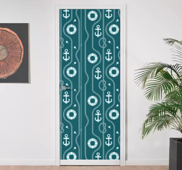 El vinilo puerta diseño de anclas es una maravillosa opción decorativa que transforma cualquier puerta en un elemento atractivo y náutico. Con su espectacular diseño que incluye anclas, patrones circulares y ilustraciones marineras, este adhesivo es perfecto para quienes desean dar un toque marítimo a su hogar. Las olas y el océano se entrelazan en un estampado que evoca la frescura del mar, convirtiendo una puerta común en una obra de arte que encantará a todos los visitantes.