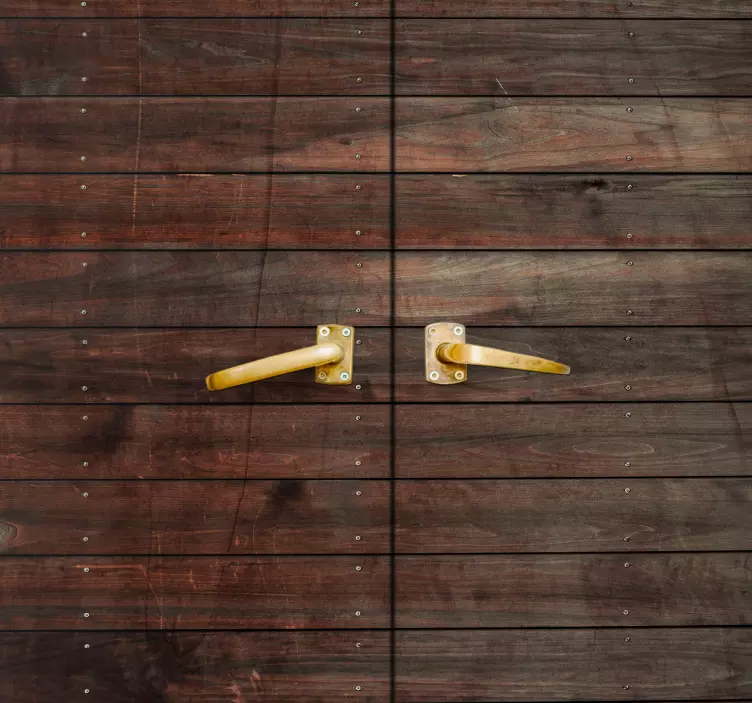 Descubre nuestro vinilo puerta entrada de madera clásica, un adhesivo con un diseño gráfico cautivador que evoca la esencia rústica de la madera. Este vinilo, en tonos marrones y con una disposición vertical que simula tablones, aporta una textura auténtica y un estilo cálido a cualquier espacio. Perfecto para dar la bienvenida a tus invitados, este diseño combina la elegancia del hardware clásico con la funcionalidad moderna de un vinilo decorativo.