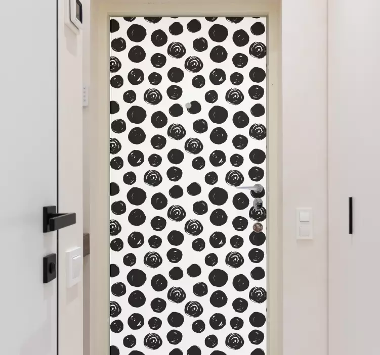 Descubre el asombroso vinilo puerta patrón circular audaz, un adhesivo que transformará tu puerta en una obra de arte. Con un diseño gráfico que destaca por sus círculos irregulares y un patrón abstracto en blanco y negro, este vinilo minimalista aporta un toque geométrico y moderno a cualquier espacio. Renueva con estilo y elegancia, haciendo que cualquier puerta se convierta en el centro de atención.