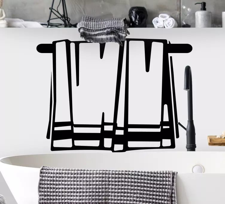 Descubre el vinilo soporte de toallas decorativo, una pieza que transforma tu baño con su diseño minimalista y moderno. Este hermoso vinilo presenta una silueta estilizada de toallas, perfectamente diseñada para dar un toque limpio y sofisticado a tu espacio. La combinación de su arte gráfico y su funcionalidad lo convierte en una opción ideal para quienes buscan una decoración única y funcional.