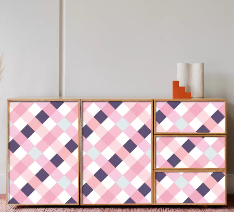 Descubre el encantador vinilo superficie patrón rosa, un diseño que combina cuadros y un estampado geométrico que transforma cualquier espacio. Su textura vistosa y moderna añade un toque de frescura a la decoración del hogar, siendo perfecto para embellecer muebles y cajones. ¡Dale vida a tu hogar con esta opción decorativa que destaca por su originalidad!