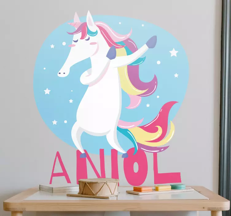 Descubre el mágico mundo de la decoración infantil con nuestro vinilo unicornio bailarín colorido. Este encantador diseño combina un unicornio juguetón y caprichoso, ideal para dar un toque de fantasía a la habitación de los más pequeños. Con su apariencia vistosa y la opción de personalizar el nombre, este vinilo es perfecto para inspirar la imaginación de los niños y hacer de su espacio un lugar lleno de alegría y color.